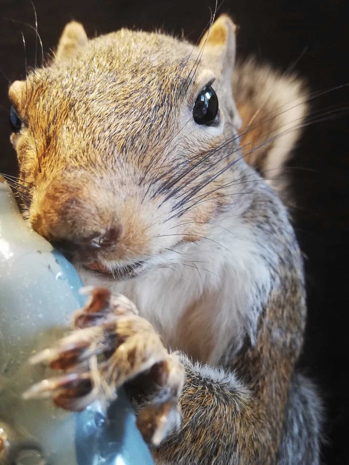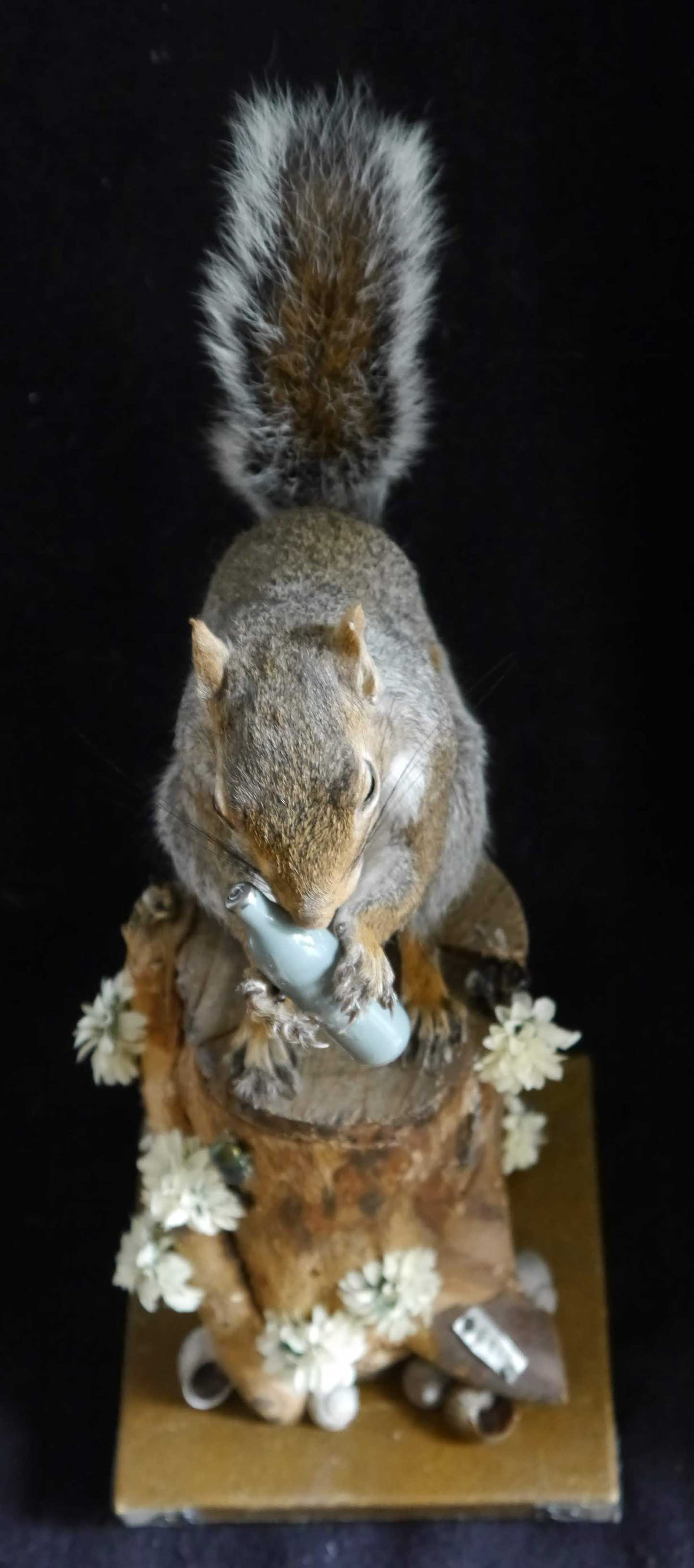 The squirrel is clutching a N.O.S canister which will soon be more common than acorns. I wonder what the squirrels make of them?