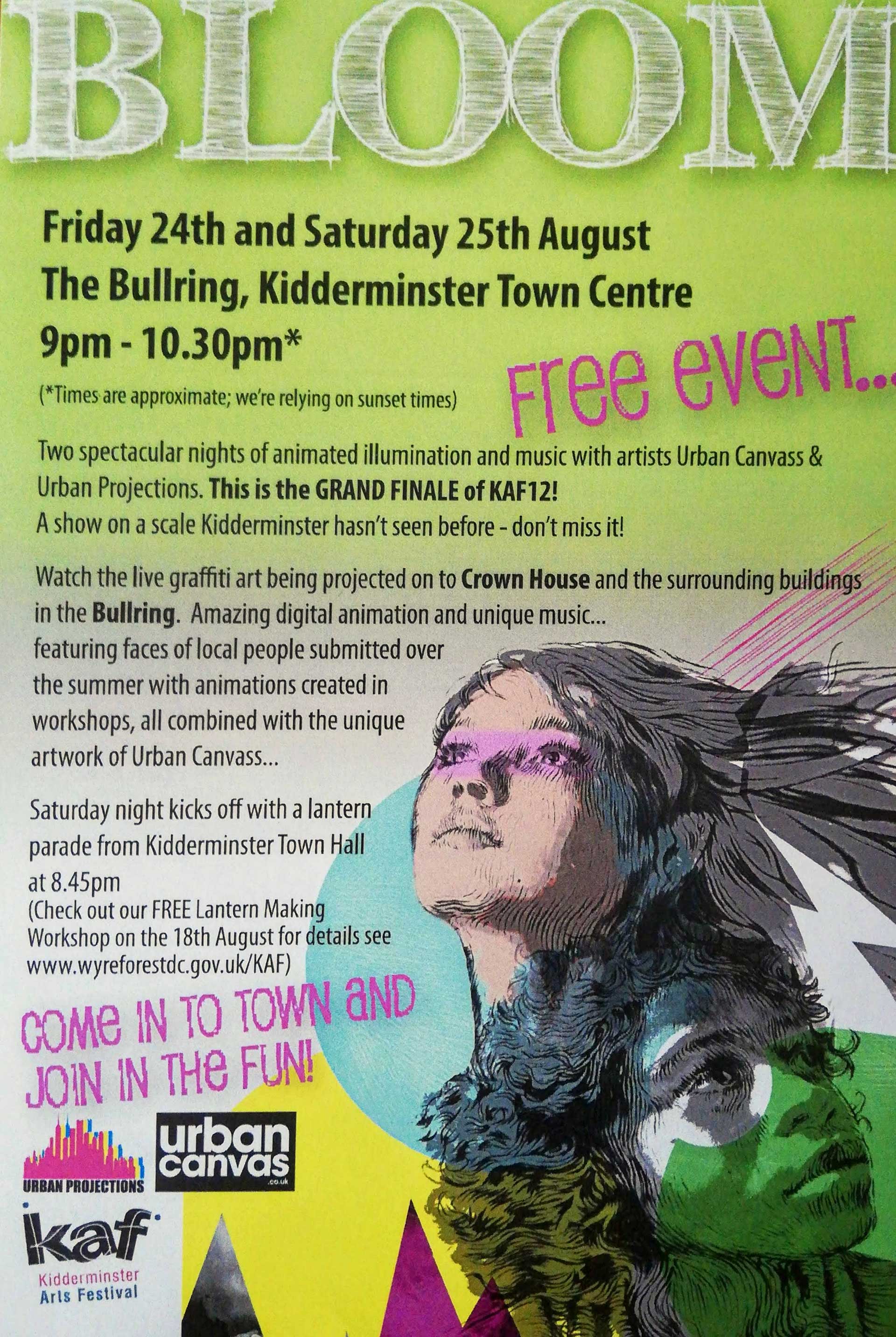 Commissioning ambitious projects such as BLOOM to bring new life into the floundering Town Centre stimulated collaborations between artists using different media. Bloom combined community workshops, live graffiti and video mapping.